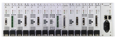 FTM8000包含:機箱、主控卡、模擬量輸入輸出卡( DAQ )、數字I/O卡、交流測量卡、直流測量卡、溫度測量卡、繼電器卡、可編程電阻卡等多種板卡,主要特點有 1臺主機箱最多可支持15塊板卡;機箱內部卡槽通訊為獨立以太網通訊;主機箱底板提供DC12V電源、以太網接口,所有板卡可以任意位置安裝,等等。