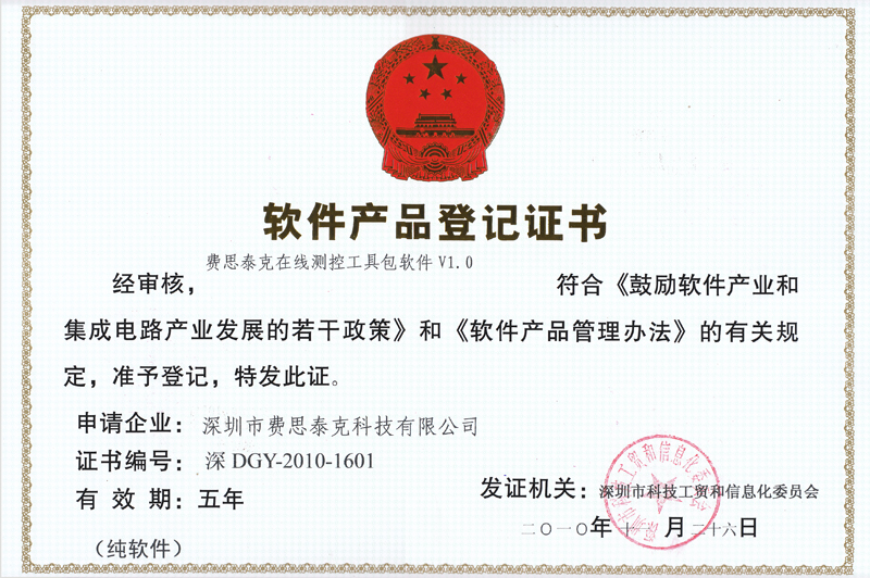 Faith費思軟件產品登記證書2010