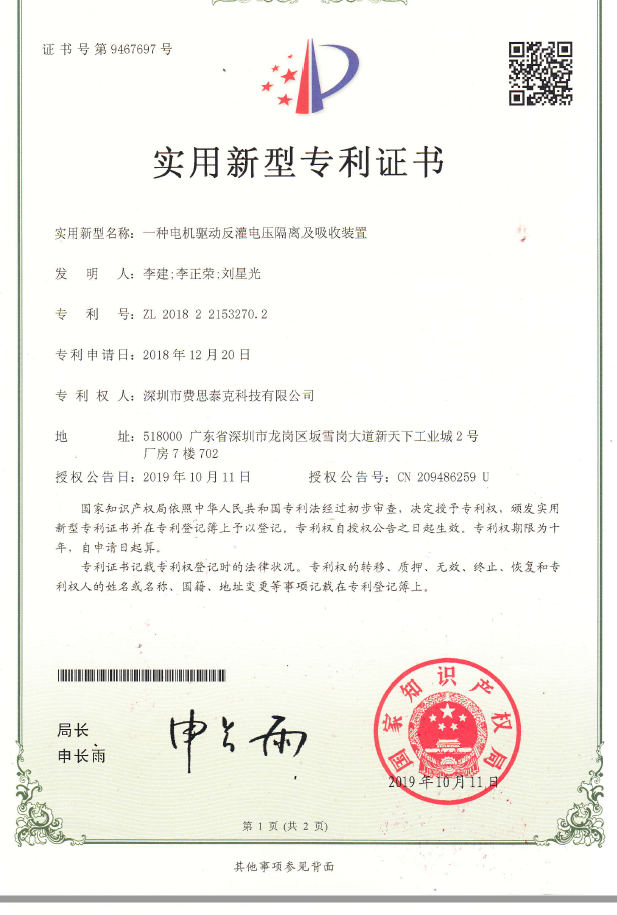 費思專利_一種電機驅動反灌電壓隔離及吸收裝置